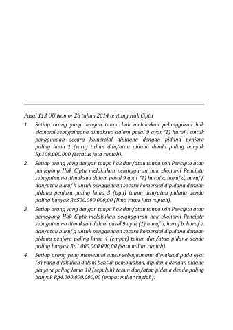 Pasal 113 UU Nomor 28 tahun 2014 tentang Hak Cipta
