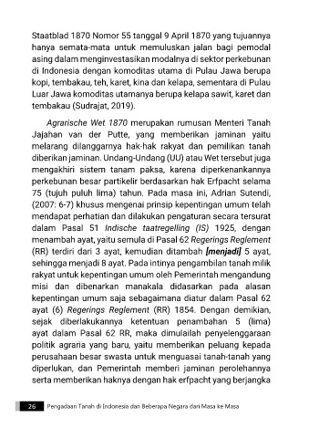 Agrarische Wet 1870 merupakan rumusan Menteri Tanah