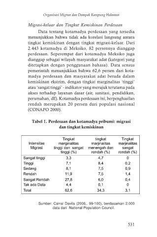 Tabel 1. Perdesaan dan kotamadya pribumi: migrasi