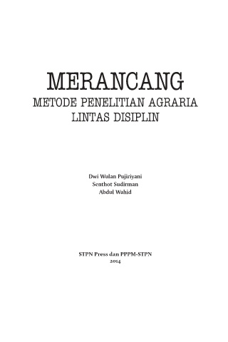 MERANCANG METODE PENELITIAN AGRARIA LINTAS DISIPLIN Dwi Wulan Pujiriyani Senthot Sudirman Abdul Wahid STPN Press dan PPPM-STPN 2014