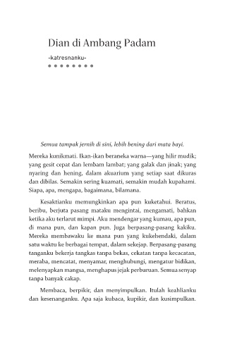 nyaring dan hening, dalam akuarium yang setiap saat dikuras