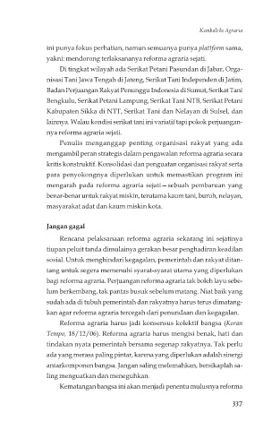 bagi reforma agraria. Perjuangan reforma agraria tak boleh layu sebe-