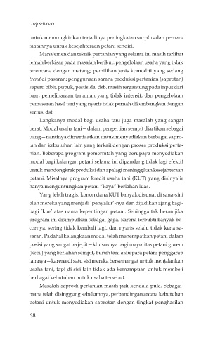 saran. Padahal kelangkaan modal telah menempatkan petani dalam