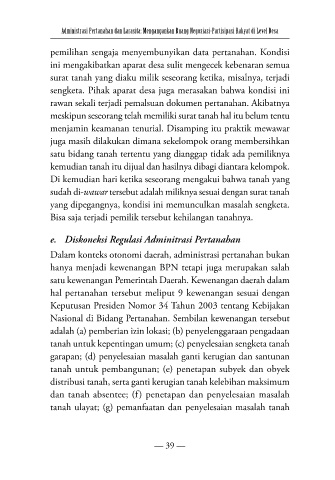 e. Diskoneksi Regulasi Adminitrasi Pertanahan