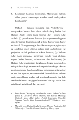 6. Keabadian hak-hak komunitas. Masyarakat hukum