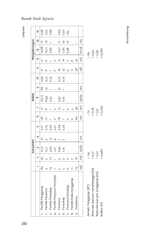 Pemilik Penggarap Pemilik Penyewa Pemilik Penyakap Pemilik Penyewa Penyakap Penyewa Penyakap Penyewa Penyakap Pemilik tidak menggarap Tunakisma Jumlah Penggarap (RT) Rata-rata luas per rumahtangga (ha) Rata-rata luas per penggarap (ha)