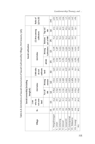 Table 6.8. Gini Indices of Sawah Owned and of Sawah Cultivated by Village, Wet Season, 1983