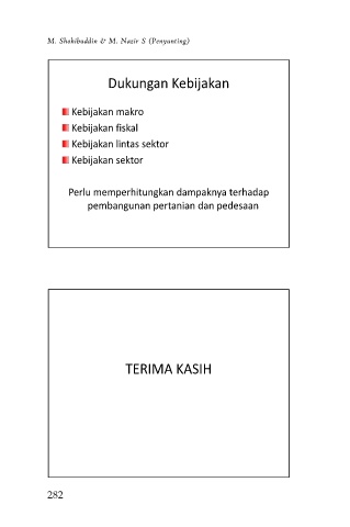 M. Shohibuddin & M. Nazir S (Penyunting) Dukungan Kebijakan Kebijakan makro Kebijakan fiskal Kebijakan lintas sektor Kebijakan sektor Perlu memperhitungkan dampaknya terhadap pembangunan pertanian dan pedesaan TERIMA KASIH 282