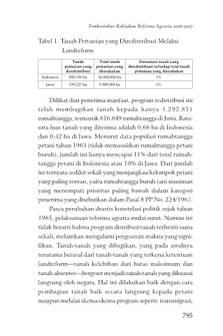 Tabel 1. Tanah Pertanian yang Diredistribusi Melalui