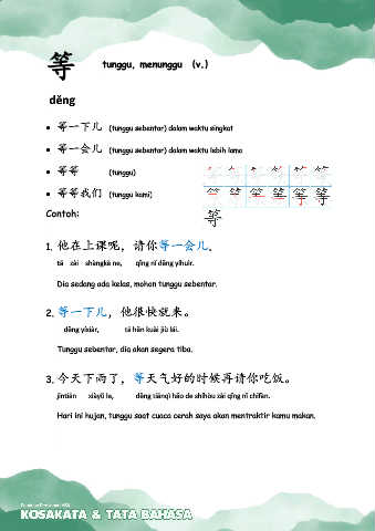• 等一会儿 (tunggu sebentar) dalam waktu lebih lama