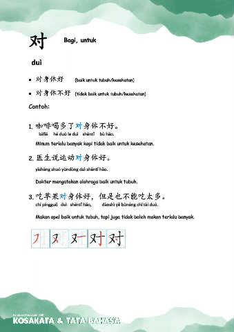 • 对身体好 (baik untuk tubuh/kesehatan)