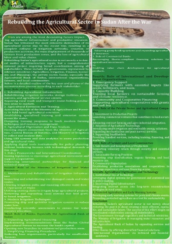 water loss.                                                  Rebuilding Sudan’s agricultural sector  is  not merely about