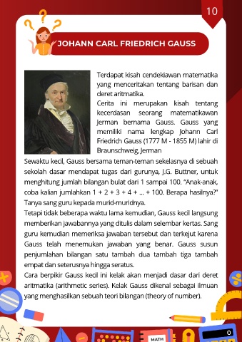 aritmatika (arithmetic series). Kelak Gauss dikenal sebagai ilmuan