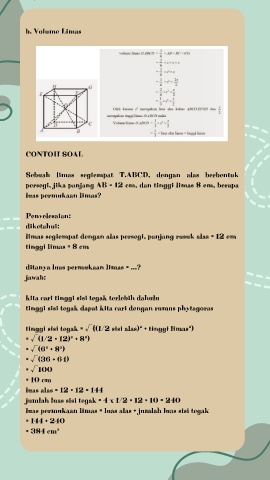 persegi, jika panjang AB = 12 cm, dan tinggi limas 8 em, berapa
