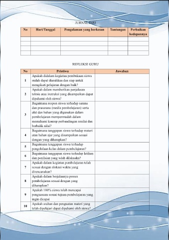 No Hari/Tanggal Pengalaman yang berkesan Tantangan Perbaikan
