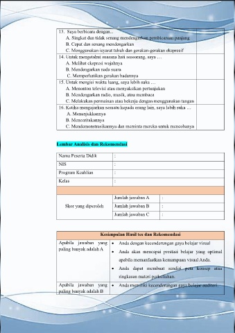 Apabila jawaban yang • Anda dengan kecenderungan gaya belajar visual