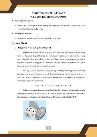 •  Peserta didik diharapkan dapat menggunakan peluang saling lepas, saling bebas, dan