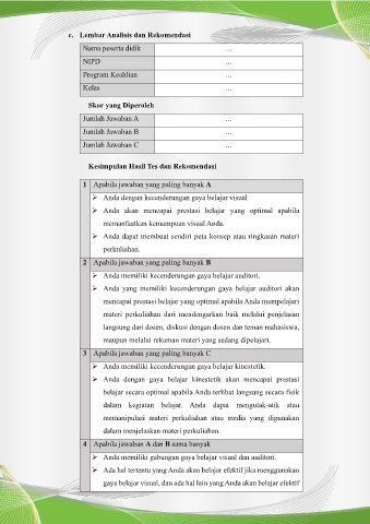 ➢ Anda memiliki kecenderungan gaya belajar kinestetik.