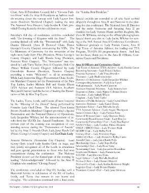 night were Lady Kym Eler (President, Prince George’s but not least, thank you to the Area II Officers, Com-