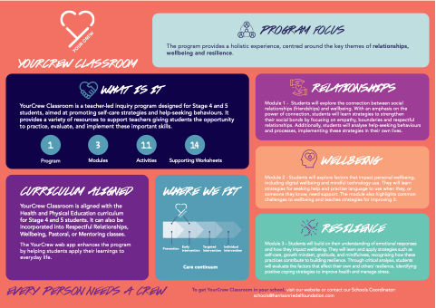 YourCrew Classroom is a teacher-led inquiry program designed for Stage 4 and 5
