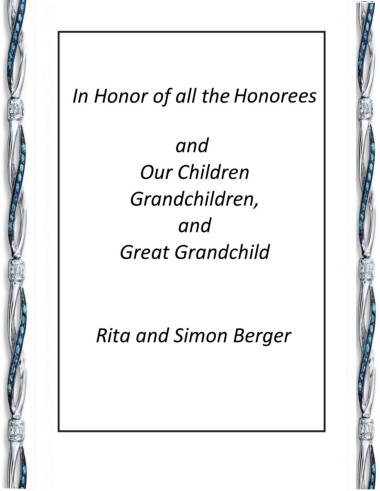 In Honor of all the Honorees and Our Children Grandchildren, and Great Grandchild Rita and Simon Berger