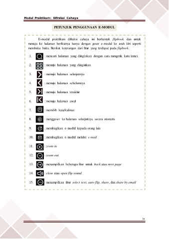 E-modul praktikum difraksi cahaya ini berbentuk flipbook dan untuk