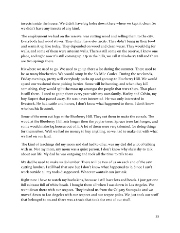 Some of the men cut logs at the Blueberry Hill. They cut them to make the corrals. The