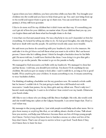 All I like to see is those who are doing well like Bruce Starlight. His wife, she would cook