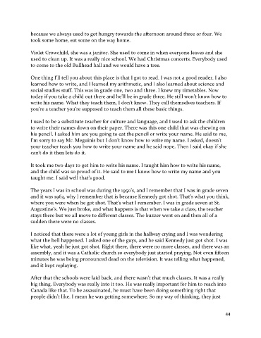 where you were when he got shot. That’s what I remember. I was in grade seven at St.