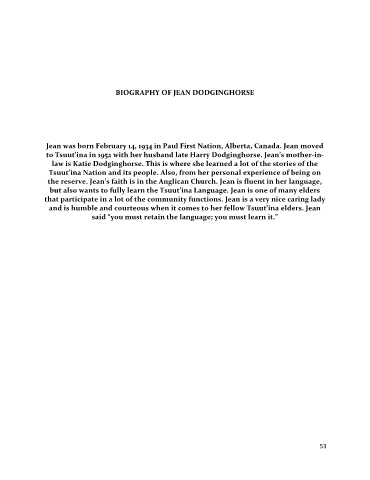 BIOGRAPHY OF JEAN DODGINGHORSE