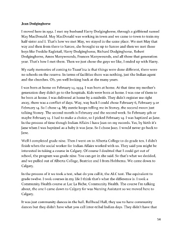 I moved here in 1952. I met my husband Harry Dodginghorse, through a girlfriend named
