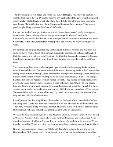 saw my grandmother wear slacks or my mother. I think she was raised up, off the reserve.