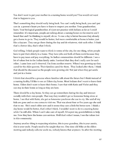 a nursing facility I’d like to see an Elders day home. Most Indians don’t want to leave their