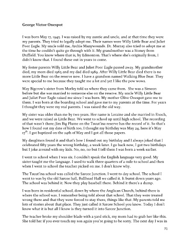 and Juliet Poor Eagle raised me since I was born. My mother Olive Onespot gave me to
