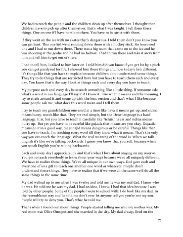 means hurry, words like that. They are real simple, but the Dene language is a hard