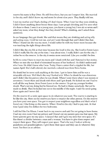 found out. I like living on the reserve. When I lived in the city I had to pay rent. At that