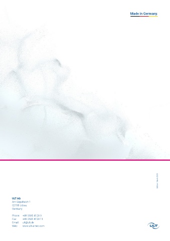 Made in Germany. Edition: March 2025 ULT AG Am Göpelteich 1 02708 Löbau Germany Phone: +49 3585 4128 0 Fax: +49 3585 4128 11 Email: ult@ult.de Web: www.ult-airtec.com