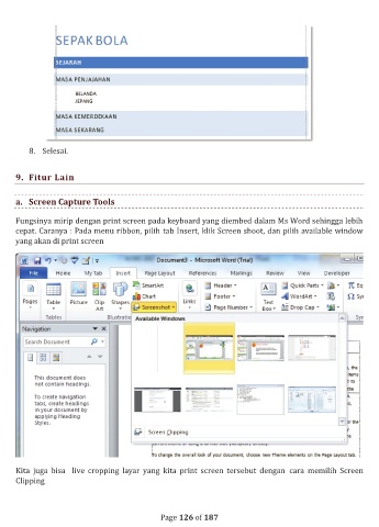cepat. Caranya : Pada menu ribbon, pilih tab Insert, klik Screen shoot, dan pilih available window