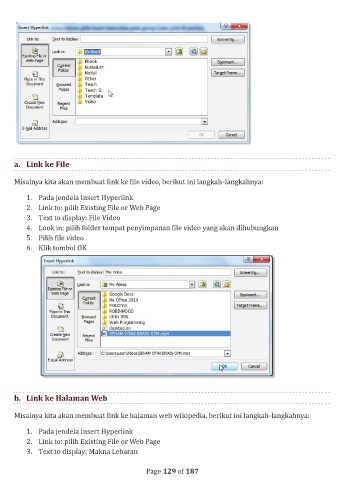 Misalnya kita akan membuat link ke  ile video, berikut ini langkah-langkahnya: