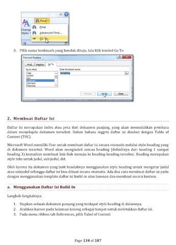 atau subjudul sehingga daftar isi bias dibuat secara otomatis. Ada dua cara membuat daftar isi yaitu