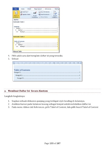 a.  Membuat Daftar Isi  Secara Kustom