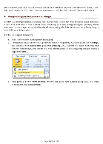 2. Tambahkan data sumber (data penerima surat / recipients). Caranya: pada tab Mailings,