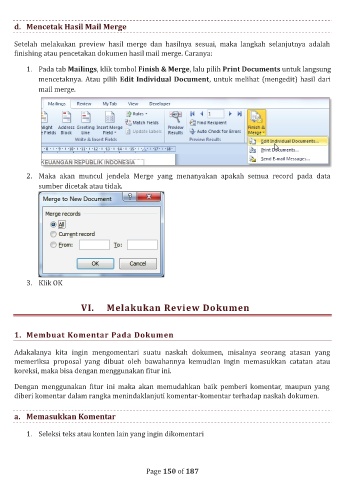 d. Mencetak Hasil Mail Merge