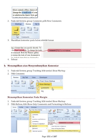 1. Pada tab Review, group Tracking, klik tombol Show Markup