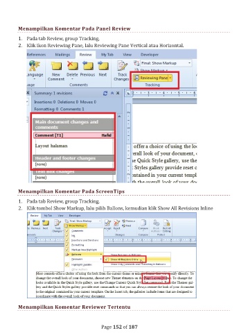 2. Klik tombol Show Markup, lalu pilih Ballons, kemudian klik Show All Revisions Inline