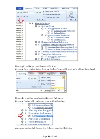 Caranya: Pada tab Outlining, di group Outline Tools, pilih level pada pilihan Show Level.
