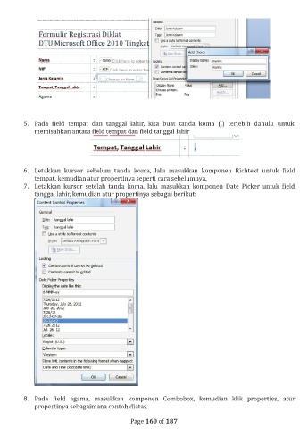 5. Pada ield tempat dan tanggal lahir, kita buat tanda koma (,) terlebih dahulu untuk