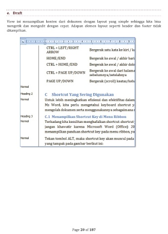 e. Draft View ini menampilkan konten dari dokumen dengan layout yang simple sehingga kita bisa mengetik dan mengedit dengan cepat. Adapun elemen layout seperti header dan footer tidak ditampilkan. Page 20 of 187