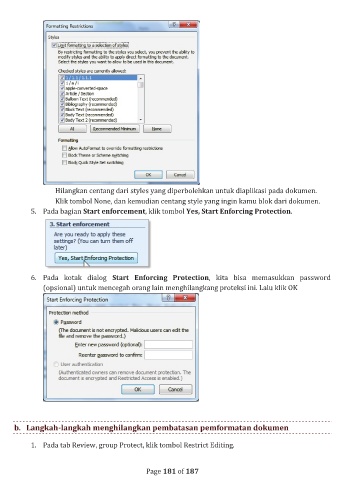 b. Langkah-langkah menghilangkan pembatasan pemformatan dokumen