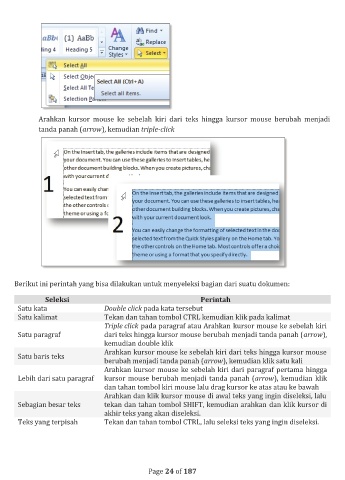 Lebih dari satu paragraf kursor mouse berubah menjadi tanda panah (arrow), kemudian klik